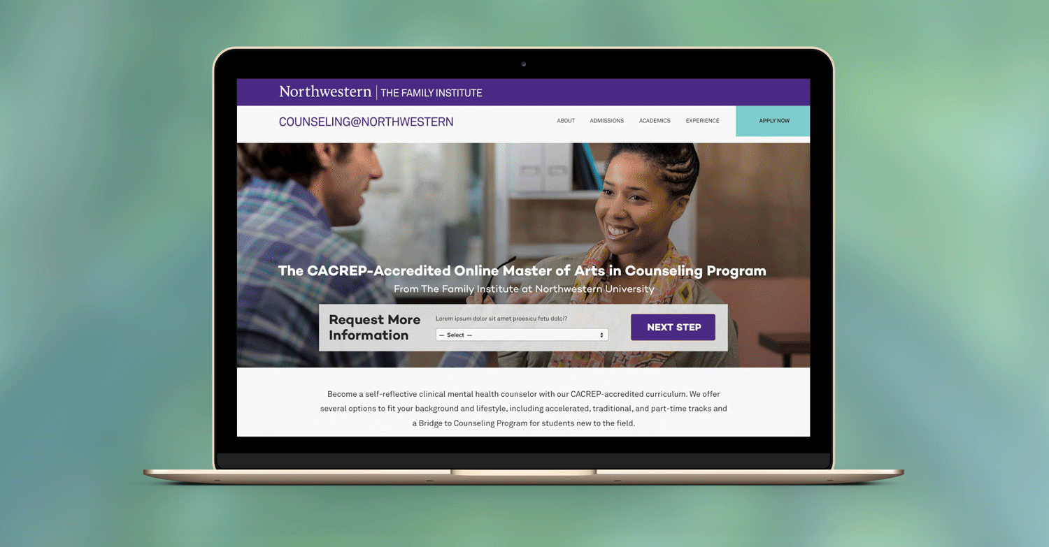 This design was a collaboration among many teams to redesign the Counseling@Northwestern homepage. We referenced Northwestern's University's new branding guidelines to create a vibrant experience.