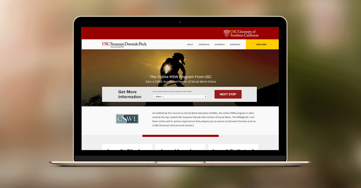 This design was a collaboration among many teams to create a beautiful and high-performing site for MSW@USC.